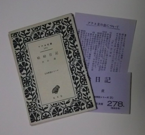 この本は、アテネ文庫という大変薄い文庫本で、戦後の紙の無い時代に、文化芸術などについての本を沢山発行していた中の一冊です。表紙のデザインがステキなので、古書店でジャケ買いしました。