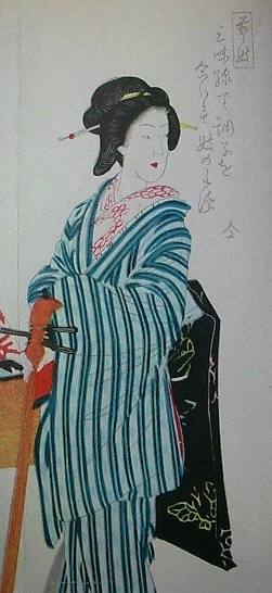 当時の女性の風俗を描いたこの作品、最後の一人が芸妓さんです。